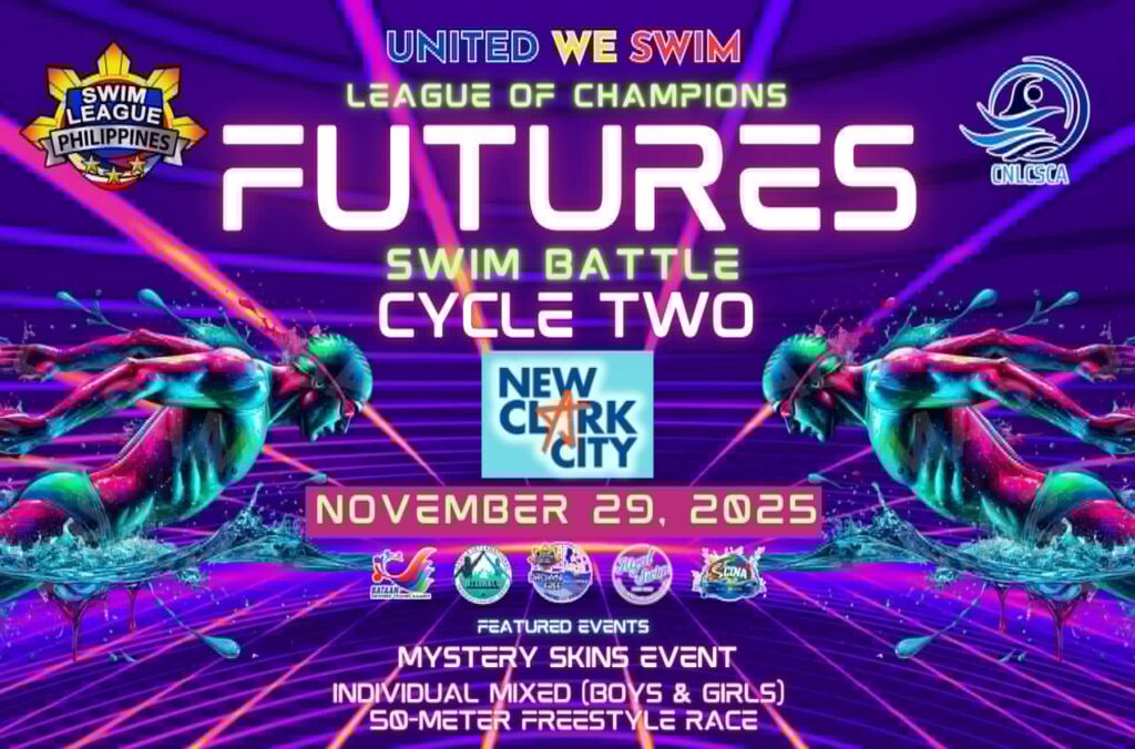 The excitement is building as the League of Champions returns with “FUTURES – Swim Battle Cycle Two”, set to take place on Saturday, November 29, 2025, at the The Aquatic Center, New Clark City, Capas Tarlac. This highly anticipated swimming competition will showcase the talents of rising and veteran swimmers across various age groups and categories in a long course (50-meter) format.